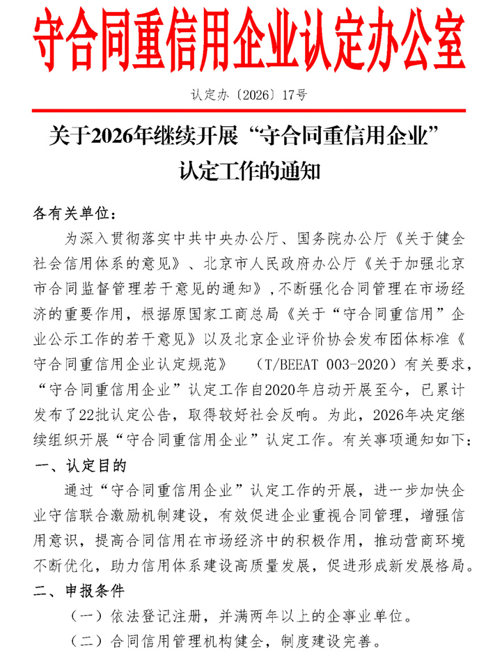 关于2026年继续开展守合同重信用企业评价工作的通知